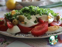 Выкладываем заправку на салат! Посыпаем мелко нарезанным зеленым луком и подаем. Приятного аппетита! |