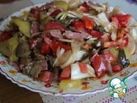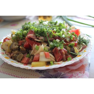 Салат отставить на 20-30 минут для пропитки. Салат посыпать зеленым луком при подаче. Приятного аппетита. |