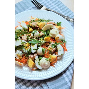 Заправить майонезом, горчицей и зеленью. Подать к столу. |