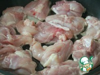 Бедра нарезать на кусочки и обжарить в 1 ст л оливкового масла с двух сторон. |