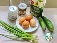 Смешайте зеленый луку с огурцами, яйцами и заправкой. При желании еще посолите поперчите. Все! Можно подавать. |