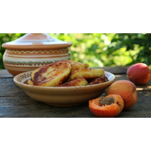 Описание: Эта лепешка будет бесподобно вкусным оранжевым чудом в Вашей тарелке! Нежнейшие сырники с абрикосами готовятся из домашнего творога и яиц, спелых сладких абрикосов. Это идеальные сырники! Получите незабываемое удовольствие от этого блюда!