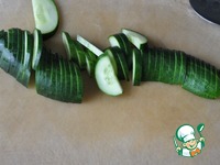 Берём огурец, режем тонкими полукольцами, в оригинальном рецепте использовался авокадо. |