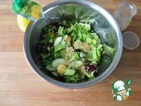 Поливаем салат заправкой, аккуратно перемешиваем. Не мните листья салата! |