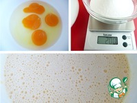 Яйца взбить миксером на больших оборотах с сахаром и солью в крепкую пену. |