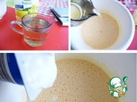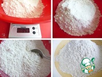 К муке добавить разрыхлитель теста, перемешать. Всю муку добавить в массу. Взбить миксером на небольших оборотах. |