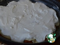 На тесто выкладываем сметану. Распределить по всей поверхности. |