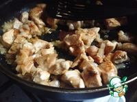 В сотейнике разогреть растительное масло и обжарить курицу почти до готовности. Выложить на тарелку. |