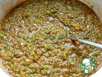 Тем временем мелко нарежем зелень. По прошествии 20 минут добавляем нарезанную зелень, соль, сахар и все специи. Продолжаем тушить под крышкой соус еще 40 минут. |