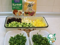 Отварить яйца, картофель "в мундире". Свеклу отварить или запечь (у меня запечённая). Зелень и огурцы вымыть и мелко нарезать. Охлажденные яйца и овощи очистить и нарезать кубиками |