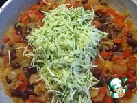 В конце добавить тонко нарезаный цуккини или молодой кабачок. Выключить плиту, перемешать. |