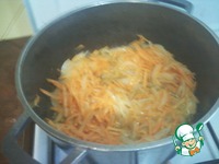 Когда лук слегда обжариться, добавить натертую на крупной терке морковь (если надо добавить еще масла), обжарить минут 5-10. |