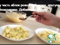5. Делим яблоки на две части. Одну часть режем кубиками, другую ломтиками. Добавляем корицу в яблоки, нарезанные кубиками. |