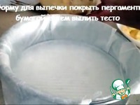 7. Форму для выпечки покрываем пергаментной бумагой, выливаем тесто. |