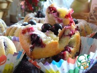 Я каждый кекс поместила в бумажную формочку. Остывшие кексы украсила живыми ягодами, присыпала сахарной пудрой. |