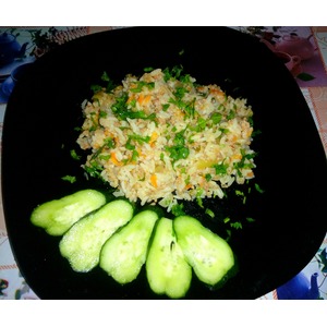 Готовый рис выкладываем на тарелку. Подаём с любимыми овощами или салатом. |