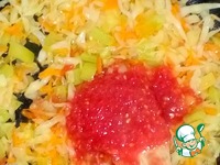 В разогретой сковороде слегка обжариваем лук на растительном масле, затем добавляем морковь. Жарим до мягкости моркови. |