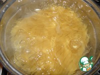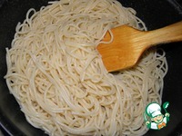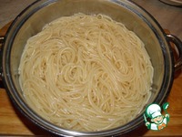 Отварите в кипящей подсоленной воде спагетти. |