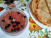 Паштет разложить в три небольшие баночки. Залить теплым желе на 1 см., выложить ягоды смородины, предварительно вымытые и обсушенные. Закрыть и убрать в холодильник для застывания желе, на 1-2 часа. |