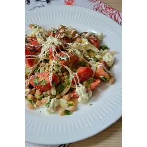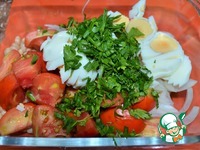 Описание: Такой легкий, но сытный салат очень пригодится в летнем меню, готовится быстро, из продуктов "под рукой" и легко может заменить полноценный ужин. Угощайтесь.