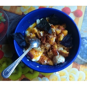 Добавляем соль, перец. Все перемешиваем. Пару листиков базилика. Готово. (Быстро съедаем и притворяемся спящим.) |