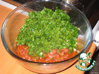 Выкладываем в салатник фасоль в томатном соусе и зелень. Перемешиваем. Даем настояться пол часа. |