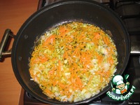 Лук мелко режем, морковь на крупную терку. Овощи обжариваем в небольшом количестве растительного масла до золотистого цвета. |