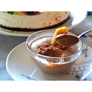 Разливаем шоколад по вазочкам, присыпаем корицей, украшаем бананом. Ставим в холод. |