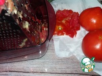 В кастрюле разогреть масло, шумовкой выловить курицу и овощи, обжарить в масле по 4-5 мин с каждой стороны, после чего влитьвино, тертые помидоры и варить при закрытой крышке 20 мин. |