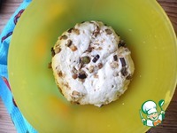 В подошедшее тесто тщательно вмешиваем обжаренные баклажаны с чесноком. |