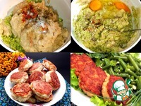Замочила перловую крупу на сутки. После чего её промыла и высыпала в миску. Измельчила брокколи и куриное филе с луком, чесноком, картофелем, и переложила в миску. |
