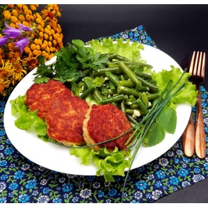 Котлеты очень мягкие, румяные и пухленькие. Перловка приятно лопалась на зубах. На гарнир я использовала отварную фасоль. |