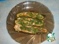 Кабачки и зелень помыть. 2 кабачка режем вдоль примерно 4-5 мм толщиной. |