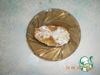Кабачок также жарим, режем на 2 части, чтобы был не очень длинным, смазываем соусом и складываем пополам. |