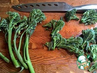 Моем бейби брокколи и отрезаем соцветья от стеблей |