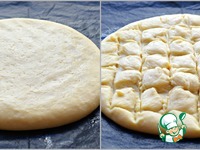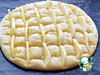 Полуовалы сыра вставить в прорези на тесте (как на фото) |