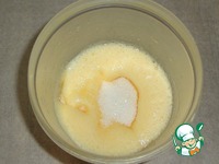 Наливаем теплое растопленное сливочное масло, перемешиваем. |