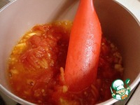 Добавить нарезанные маленькими кубиками помидоры и тушить минут пять. |