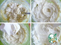 Перемешать ложкой. Взбить миксером на слабых оборотах. Добавить сметану, взбить. |
