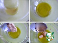 В чашу для приготовления соуса влить уксус, оливковое масло. Добавить горчицу и жидкий мед. |