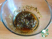 Высыпать смесь в мисочку, добавить две щепотки соли, продавленный чеснок и 3 ложки оливкового масла. Все тщательно перемешать. |