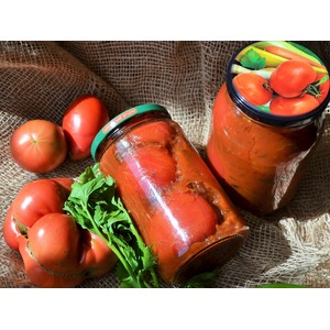 Описание: На наш вкус обычные томаты в собственном соку кажутся пресными, поэтому уже несколько лет я готовлю их по этому рецепту. Готовить недолго, т. к. не надо ничего стерилизовать и еще одно преимущество, без уксуса. Предлагаю и Вам попробовать. Эти томаты можно не только использовать для соусов или супов, они служат и самостоятельным блюдом, закуской. Угощайтесь.