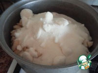 В конце добавляем загуститель, хорошо перемешать и варить еще 5 мин. У меня польский конфитюр. Очень хорошо загущает джем и экономит расход сахара. |