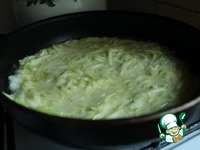 Во взбитое яйцо вмешать сыр и кабачок. |