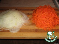 Режем лук полукольцами или кольцами или как угодно. Натираем морковь на тёрке (не узбекский вариант - они не пользуются тёркой). Обжариваем 2-3 мин. лук, потом добавляем морковь и ещё 2-3 мин. |