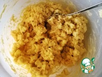 Растираем в миске размягченное сливочное масло с сахаром и ванилином (или ванильным сахаром) до однородного состояния. Добавляем 1 яйцо и также растираем до состояния крема |