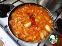 Описание: Яркий насыщенный вкус этих щей не оставит вас равнодушными. Томатный сок и яблоко сделали своё дело! Бульон для этих щей можно взять любой - мясной или овощной. Я варила бульон из индейки.