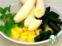 Описание: Делаю смузи по вечерам с йогуртом, соком или на воде. Фрукты, зелень, овощи каждый раз меняю. Попробуйте этот очень вкусный и густой смузи. Фрукты можно использовать свежие или замороженные. Во фруктовые смузи каждый раз добавляю бананы. Они придают смузи сытость, а базилик - своеобразную нотку вкуса.