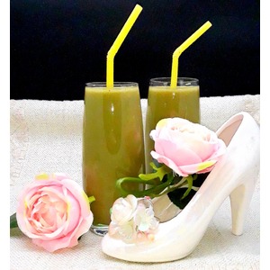 Смузи получился красивого зелёного цвета. На фото ярких красок не видно, т. к не настроен мой новый телефон, которым я фотографировала. Со следующим смузи всё будет в порядке. Настрою краски. |