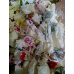 Все ингредиенты покрошить, перемешать, заправить йогуртом. Соль я не добавляю так как это блюдо диетическое, но если хочется можно посолить